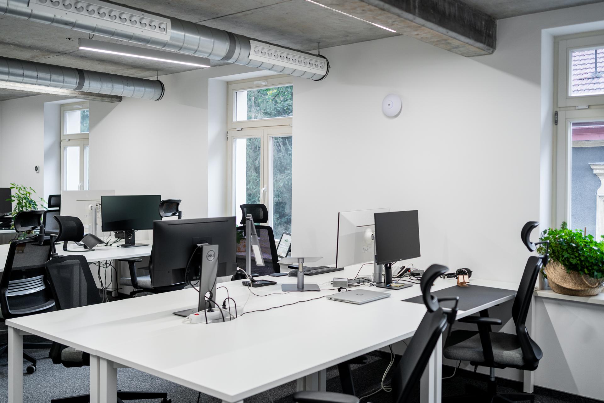 The coworking space is located in a renovated historic tenement building at 24 Zamoyskiego Street in the Stare Podgórze district of Kraków. Cluster Cowork Stare Podgórze offers 1,200 sqm of space spread across four floors and a mezzanine. It features 14 serviced offices, 160 workstations, and 10 conference rooms. Cluster Cowork is not only a place to work but also to host industry events. Both small and large four-legged friends are welcome. Each part of the office has its own social area, including a relaxation zone. The building also houses Wine Garage, which is suitable for informal meetings. Coworkers have access to fully equipped kitchens and social rooms on every floor, with unlimited coffee and tea. The space is accessible 24/7, and the reception operates Monday to Friday from 9:00 AM to 5:00 PM. Tenants also have access to a covered parking area. The location is easily reachable by public transport, with a tram stop just 220 meters from the building. Travel time to the Main Market Square is under 10 minutes, and to the Main Train Station around 20 minutes. Nearby, you can enjoy a walk in Bednarski Park or along the Vistula River.