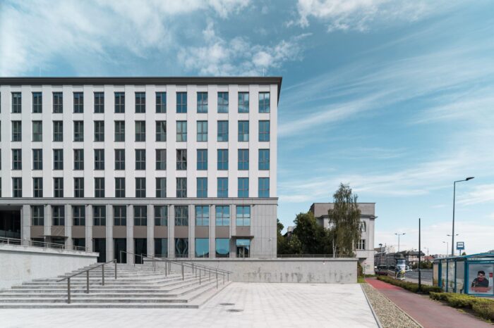 K1 to najbardziej rozpoznawalny i najwyższy budynek biurowy w Krakowie, zlokalizowany przy al. Pokoju 1, w dzielnicy Grzegórzki, tuż obok Ronda Grzegórzeckiego. Wieżowiec, potocznie nazywany „Błękitkiem”, ma 20 kondygnacji naziemnych i wysokość architektoniczną 105 m (do dachu 88 m). Oferuje około 11 000–13 000 m² nowoczesnej powierzchni biurowej do wynajęcia, z możliwością elastycznej aranżacji – typowe piętro biurowe to ok. 444 m² (piętra 4–17), a największe powierzchnie dostępne są na niższych kondygnacjach (do 2100 m² na piętrach 1–2). Parter przeznaczony jest na lokale handlowe i usługowe (ok. 1 617 m²), w tym restaurację i kawiarnię. Budynek przeszedł gruntowną modernizację wnętrz, lobby i elewacji. Wyróżnia się wysokim standardem technicznym: klimatyzacja, podnoszone podłogi, podwieszane sufity, światłowód, system BMS, kontrola dostępu, monitoring, ochrona 24/7, recepcja, czujniki dymu, wykładzina, uchylne okna oraz certyfikat BREEAM (Very Good). Do dyspozycji najemców są 63 miejsca parkingowe (44 podziemne), stanowiska do ładowania samochodów elektrycznych, infrastruktura rowerowa oraz specjalne miejsca dla car-sharingu. Wysokość pomieszczeń biurowych netto to 2,7 m.