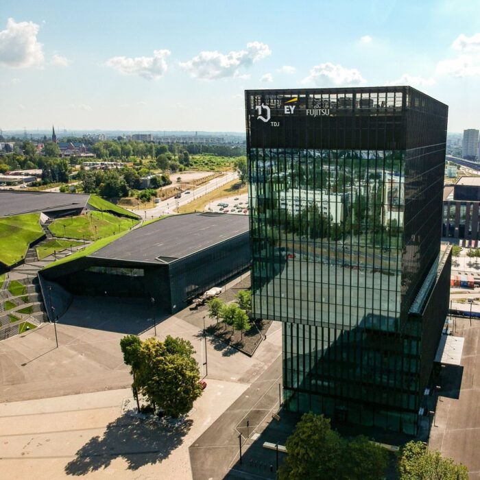 KTW II to nowoczesny, trzydziestojednokondygnacyjny wieżowiec biurowy klasy A+, stanowiący najwyższy budynek biurowy w Katowicach i całej Górnośląsko-Zagłębiowskiej Metropolii. Obiekt zlokalizowany jest przy al. Roździeńskiego 1, tuż obok Spodka, Międzynarodowego Centrum Kongresowego i ronda gen. Jerzego Ziętka, w ścisłym centrum miasta. Budynek oferuje około 39 900 m² powierzchni biurowej do wynajęcia oraz 2 100 m² powierzchni handlowo-usługowej, a typowe piętro liczy około 1 410 m². Architektura wieżowca opiera się na trzech przesuniętych względem siebie prostopadłościanach, a fasada wykonana jest z selektywnego szkła i prefabrykowanego betonu, co nadaje obiektowi nowoczesny i prestiżowy charakter. Wysoki standard techniczny obejmuje klimatyzację, podnoszone podłogi, podwieszane sufity, tryskacze, czujniki dymu, światłowód, BMS, monitoring, kontrolę dostępu, uchylne okna oraz całodobową ochronę. Budynek posiada certyfikaty BREEAM oraz WELL, potwierdzające zastosowanie proekologicznych i komfortowych rozwiązań. Do dyspozycji najemców jest 385 miejsc parkingowych w garażu podziemnym oraz liczne udogodnienia, takie jak lobby recepcyjne, kantyna, kawiarnia, centrum medyczne i punkty usługowe.