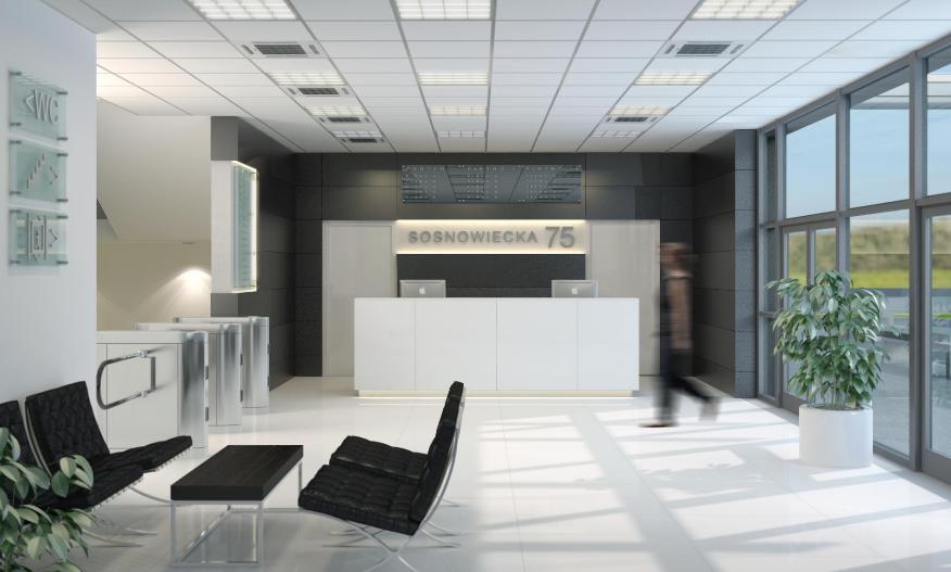 Sosnowiecka 75 to nowoczesny, kameralny budynek biurowy klasy A, zlokalizowany w północno-zachodniej części Krakowa, w dzielnicy Prądnik Biały. Obiekt oferuje około 2 000 m² powierzchni biurowej na trzech kondygnacjach, z możliwością elastycznej aranżacji przestrzeni. Wysoki standard wykończenia obejmuje klimatyzację, podnoszone podłogi, podwieszane sufity, światłowód, recepcję oraz całodobową ochronę. Do dyspozycji najemców są zarówno miejsca parkingowe podziemne, jak i naziemne, a na ostatnim piętrze znajduje się taras. Budynek wyposażony jest w nowoczesne systemy bezpieczeństwa i kontroli dostępu, a także dwie windy. W okolicy dostępne są liczne punkty usługowe, sklepy i restauracje.