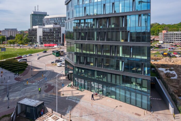 Symfonia Residence to kameralny budynek biurowo-apartamentowy położony w sercu gdańskiego Starego Miasta, przy ulicy Targ Rybny. Obiekt łączy współczesne rozwiązania projektowe z formami historycznej zabudowy, odtwarzając dawny układ gdańskich kamienic z wykorzystaniem nowoczesnych materiałów. Elewacja budynku łączy kamień, przeszklenia i perforowane przesłony w kolorze rdzawego brązu, subtelnie nawiązując do tradycyjnej architektury Gdańska. Na parterze zlokalizowano lokale usługowe, a od strony Motławy dostępne są atrakcyjne widoki na rzekę i nabrzeże. Najemcy mogą korzystać z hali garażowej. Standard techniczny obejmuje klimatyzację, światłowód, kontrolę dostępu, monitoring, system alarmowy oraz energooszczędne oświetlenie.