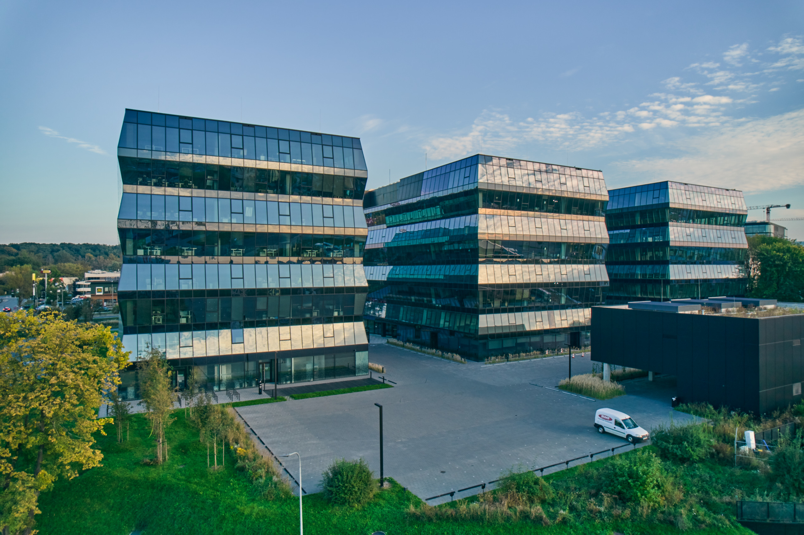 Wadowicka 3 B to nowoczesny, ośmiokondygnacyjny budynek biurowy klasy A przy ul. Wadowickiej 3B w dzielnicy Podgórze, będący częścią prestiżowego kompleksu Wadowicka 3. Budynek oferuje około 10 400 m² powierzchni biurowej z elastycznym układem pięter (typowe piętro ok. 1 400 m²), wysokim standardem technicznym (klimatyzacja, podnoszone podłogi, podwieszane sufity, światłowód, BMS, kontrola dostępu, monitoring, tryskacze, czujniki dymu, recepcja, ochrona 24/7, sale konferencyjne, otwierane okna, ścianki działowe), a na parterze znajdują się lokale handlowo-usługowe. Budynek wyróżnia się przeszkloną, falującą elewacją, zapewniającą doskonałe doświetlenie wnętrz i widok na panoramę Krakowa, a także certyfikatem BREEAM potwierdzającym zastosowanie ekologicznych i energooszczędnych rozwiązań.